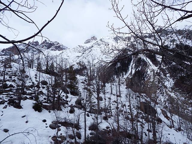 冰湖的另一端有一道宽近两米、高达十数米的断裂的冰舌,发出幽幽的蓝光。从天而下的冰瀑布在阳光下闪着银色的光芒,近800米的落差让人感到一阵晕眩。一阵阵从冰川上吹来的寒风迎面扑来,在强烈的阳光下,还是让人不寒而栗。