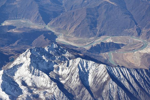 飞机上拍到的雅鲁藏布大峡谷大拐弯处,尤为壮观。