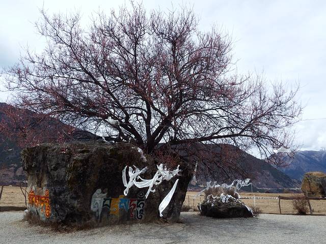情比石坚,这块巨石一分为二,夹缝中生长一株桃树,甚为奇特,有一段感人的爱情故事在当地流传至今。阿尼达生得俊俏,言谈又温文尔雅,深得姐妹两人倾心。当妹妹拉姆得知阿尼达是为救母亲而来,甚为感动并答应帮助他。通过交谈,两人渐渐互生爱意。而姐姐拉玛则想尽办法从中阻挠,以便从妹妹身边夺走阿尼达。拉姆向父亲寿多讲述了阿尼达的事情,寿多听后也为他的孝心所打动,便给了拉姆一枚仙桃并让她转交给阿尼达,姐姐拉玛知道后很生气。于是第二天拉玛偷偷地跟在妹妹拉姆的后面。正当拉姆快到阿尼达住所时,拉玛发出毒咒,漫天石雨顷刻而下,拉姆把仙桃紧紧护在胸口,被一块巨大的石头压在下面了。日月如梭,光阴逝箭,几千年过去了,拉姆的身体虽早已经化为尘土,但那胸口护住的仙桃却顶开了石头甚至开出了花,片片桃花都载露着笑容,似乎还在奉守着与阿尼达的约定,期待着早日见到心爱的阿尼达。