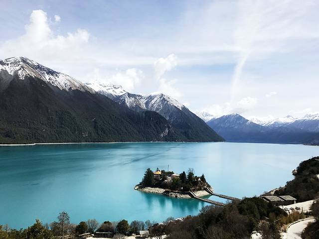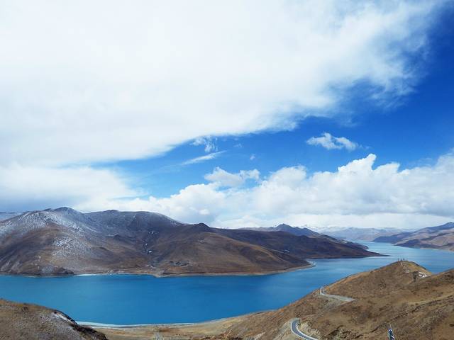 羊卓雍错被誉为世界上最美丽的水,与玛旁雍错、纳木错并称为西藏的三大圣湖。羊湖在藏人心目当中被看做是“神女散落的绿松石耳坠”,因为无论你在哪个角度,都不能看到羊卓雍错的全貌,她有三个姐妹,空母错、沉错、巴久错共存在巨大的湖盆中,手足相连,难以割舍,共同组成了让我们肉眼看不到边的圣湖。她的身躯蜿蜒在群山中达一百三十多公里,只有在地图或是高空你才能惊喜的发现她犹如耳坠,镶嵌在山的耳轮之上。