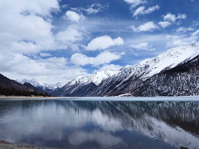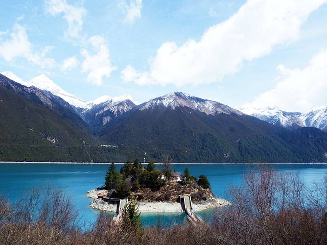 虽然巴松错深藏在交通闭塞、远离城镇的山沟里,但它却以其林木繁茂和群山耸立中的那一池碧水而广为人知。一湖碧波,犹如被大自然的鬼斧神工刷上碧绿的漆。