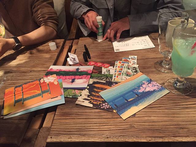 当天晚上和小苏和广能取咖啡店写送给远方朋友的明信片~这些都是小苏亲手绘制的哦!实在太漂亮了~我也写了一张给我家木木~