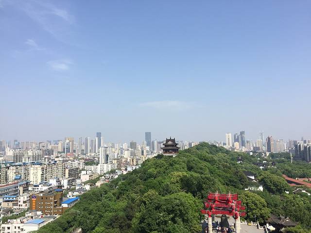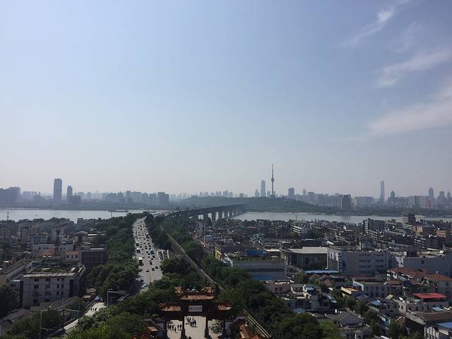 登楼远眺武汉长江大桥和长江,远处的尖尖的建筑是一个什么电视塔~