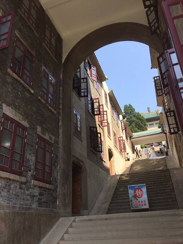 第二天10店从有熊出发,骑车10min就到了武大,这里面山路崎岖,单车非常难骑,到了著名的樱花大道,发现只有一侧是樱花,既然花已谢,全凭现象根本难以勾勒其盛况十之二三;相比全盛之时,配合后边的复古的建筑,应该名副其实吧!