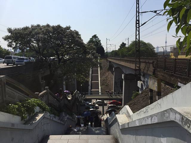出了黄鹤楼公园有个一处台阶,好像80年代的天桥的感觉...