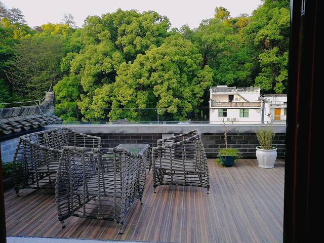 客栈阳台正对着传说中的千年樟树王。浓得化不开的绿荫,在楼顶拍了好多照片。