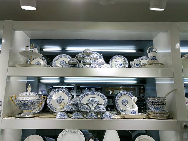 冒着大雨到了位于迎宾大道的中国陶瓷城。这个小店里东西都很精致,这是这个小店里最华丽的一套,没有标价,老板说,折后7000元。非常漂亮。左顾右盼,看花了眼,最后买了两套,给姑娘买一套餐具做嫁妆,又买了一套以后乔迁新居用。盘上车后,还舍不得走,顾不上午餐,在车里喝了牛奶吃了点东西又进去逛。我看中了几个主人杯,修哥看上了一个黑檀茶盘,搬上了车。车内装的满满的,想买也没空间安置了。于是,打道回府。