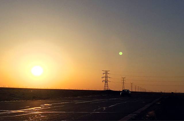 下午七点多,车行至s212的某段路遇到日落。这样的日落太美,让我停车驻足观看拍摄了半个多小时。真是“平沙落日大荒西,陇上明星高复低。”
