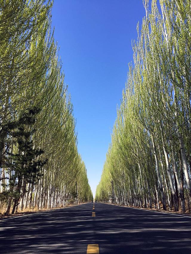 下午两点从巴彦淖尔市临河区驱车出发, 走京藏高速先去了乌梁素海 。距离景区大门约五百米的地方有一段白杨林,直直的一排,一眼看不到尽头,而乌梁素海的蒙语意思正是“杨树湖”。