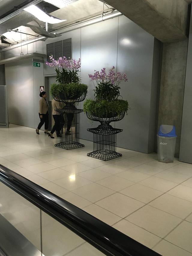 曼谷机场的花艺,旁边透明的是垃圾桶。第一次出国,什么都觉得新奇~~~哈哈~~~