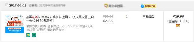 ★电话卡:提前在淘宝购买,30元。