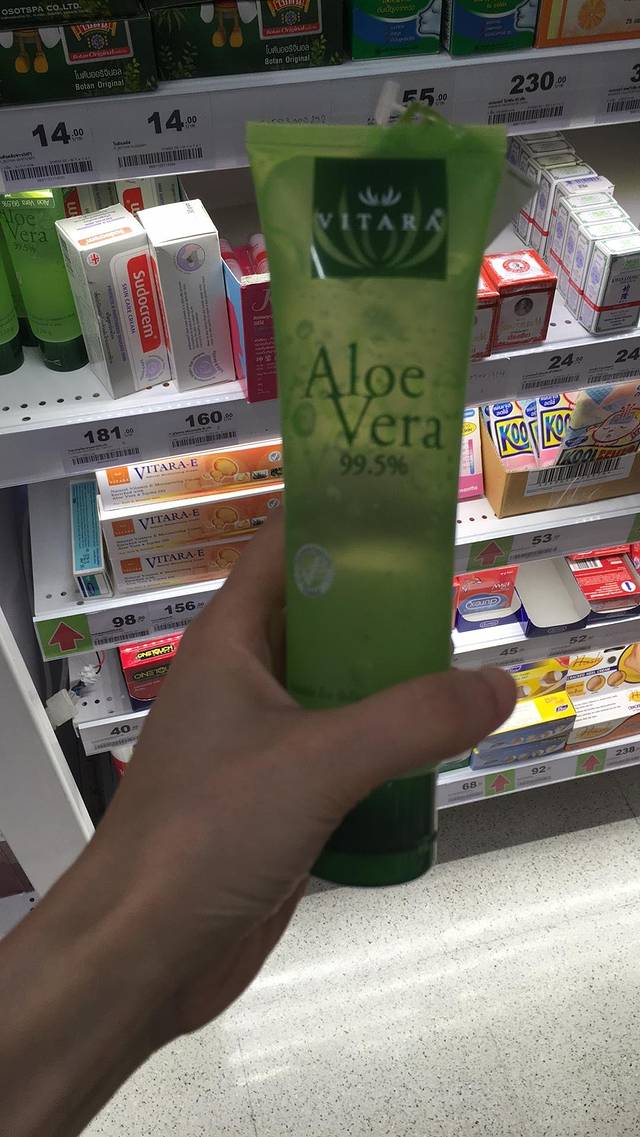 这个芦荟胶181铢,最后我买了个小的,120铢。用来晒后修复,涂上后凉凉的,甚是舒适。(对焦不准,将就看咯)