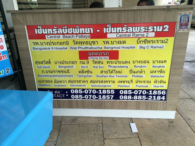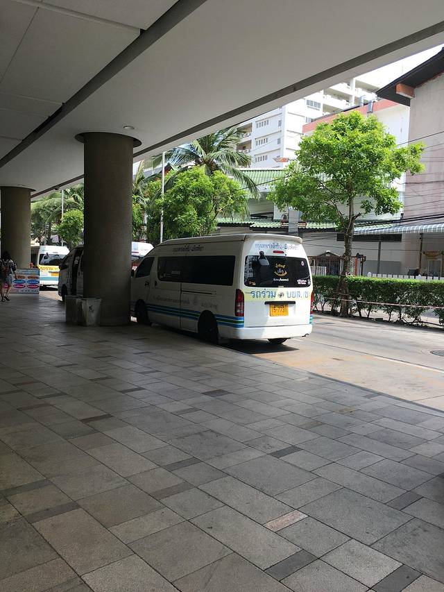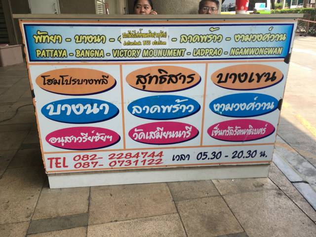 这就是定位的mini-van售票点,这里有去芭提雅、华欣、安帕瓦等等其他地方的车,我所站的位置就是去芭提雅的购票点。曼谷-芭提雅车费约120铢/人,算上我们的行李费,共约480铢。(我忘记是120铢每人,还是130铢了,行李费算1人)