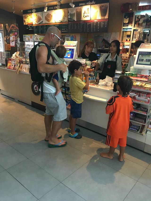 在7-11遇见的外国爸爸,拍照的目的是觉得他很厉害,1个人带3小孩,右边没拍全的橙色衣服孩子是他的。