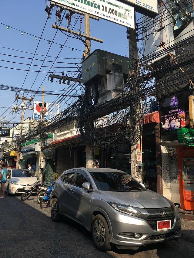 路过的步行街酒吧,说白了,步行街就是酒吧街。夜晚很热闹,白天又热又臭的,街上没什么人,臭味都是前一晚的酒味和呕吐味。街上的电线又多又乱,看到如此景象,我们根本没兴趣晚上来这里。