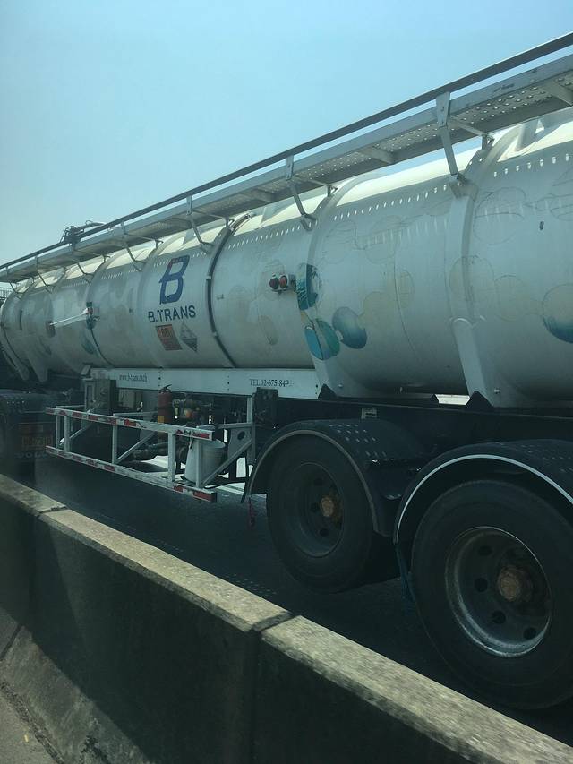 危险化学物品运输车,车身图案也蛮可爱的。