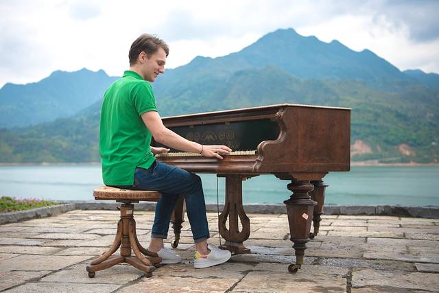 特意问过这位小帅哥,其实他并不会弹钢琴,估计就像欧阳修一样。他是醉翁之意不在弹钢琴,而在乎这山水之间吧。