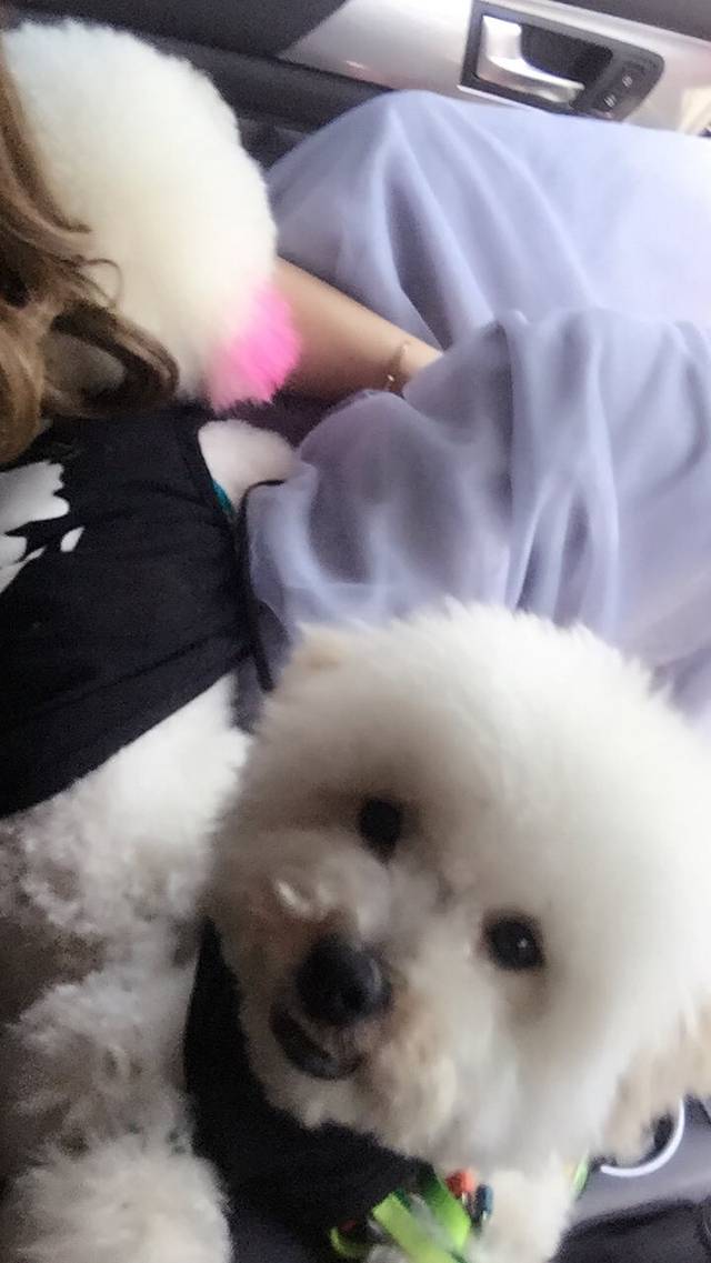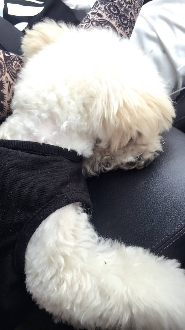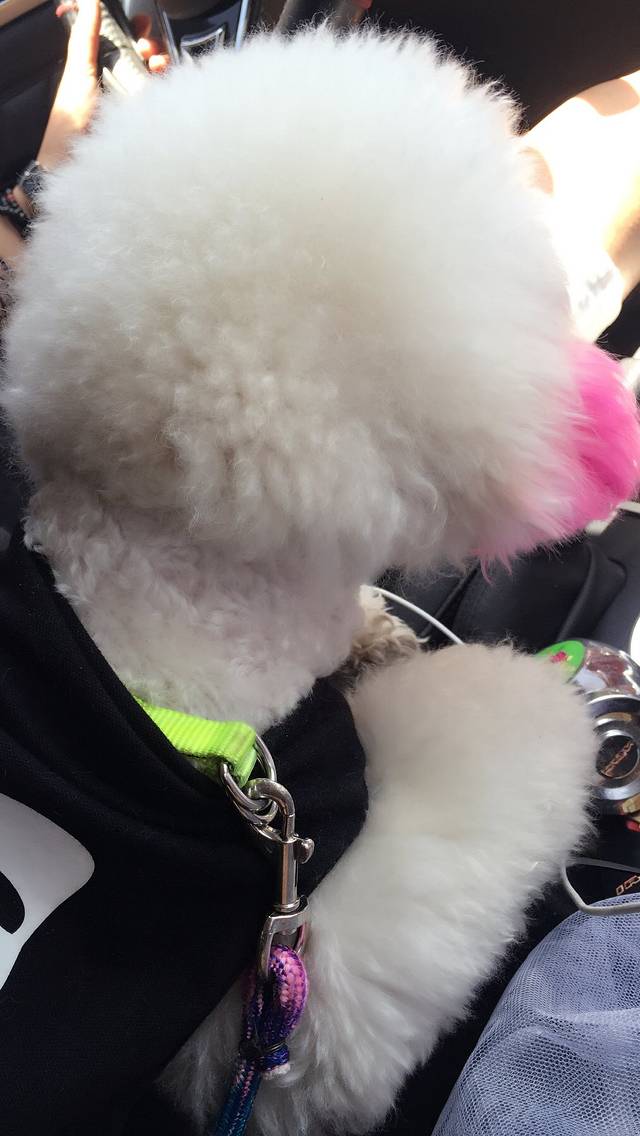 高速开了几个小时,狗狗靠扶手箱都睡着了,老大睡好了,老二睡