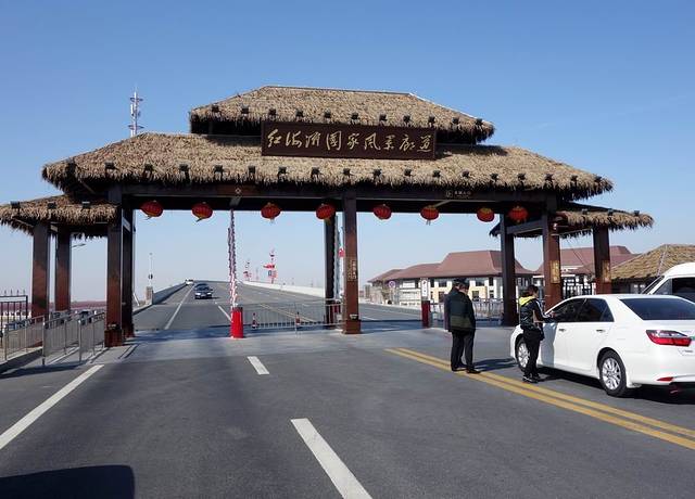 红海滩国家风景廊道景区共有三个出入口,分别是最北端的接官厅大门、中间的三角洲大门、东南的二界沟大门,三个门都可以进出,从二界沟大门进入的车辆相对最少。照片摄于红海滩国家风景廊道景区二界沟大门。