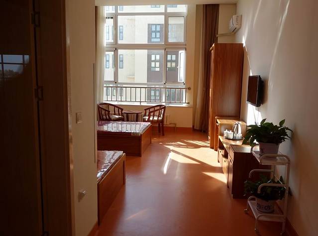 这是绿意盈然的盘锦民政福利中心康复医院的大堂
