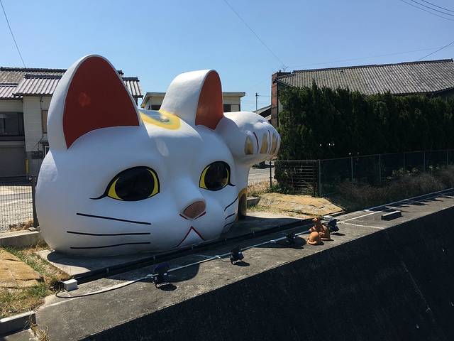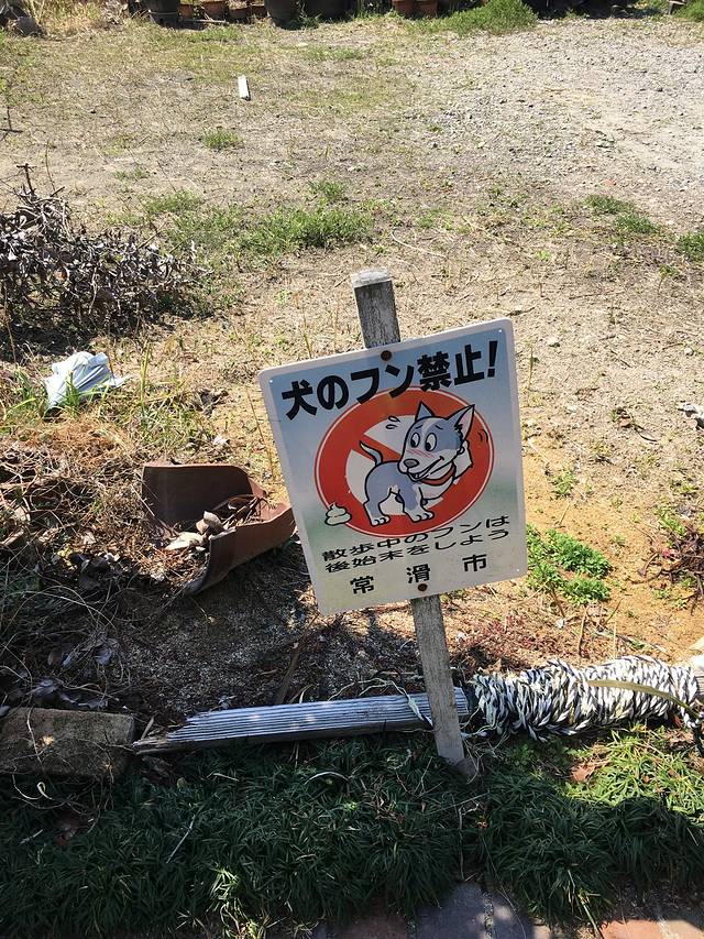 退完房我们走到名古屋站,坐名铁去常滑,那里是招财猫的故乡,而且在机场的前两站,所以不会耽误时间。这是小姐姐的行程单里的,那里有名的是常滑烧。印象最深的就是这块牌子,招财猫的故乡,禁止狗出没。