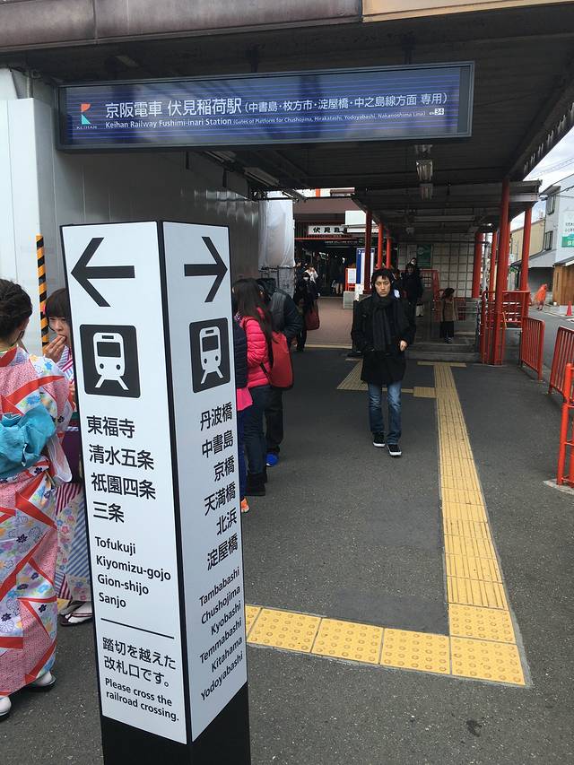 然后我们拿了寄存的行李到站台汇合。奈良线回到稻荷站,出站前给我们的icoca卡充值时,后面两男两女问我们:请问你们也是坐haruka过来的吗?估计是看到我们拿着行李箱,就以为我们从机场过来的。他们是因为haruka坐到京都站后,没有出站和进站刷过icoca卡,直接上了奈良线(不知道他们是怎么做到的)所以不管用haruka票还是icoca卡,都无法在这边闸机上刷成功出站。在国外碰到中国人求助,根本想都不用想,本能地就会去帮助。