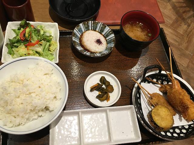 和大姐姐先去了伏见稻荷大社,十点多钟人太多,决定明天一早六点多再来拍照。中午俩人点了一份套餐,1000円,实惠。我忘了是哪天学来的,也许就是这天,要喊服务员就说斯米马赛。一句斯米马赛是万能的。