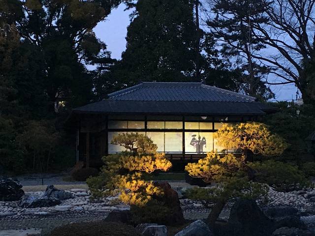然后去了二条城,穿和服的可以直接进,不用排队。门票查的是600円,给1000纸币的话就是找4个100円的硬币。大姐姐说她想要一个500円的硬币,那就按国内的方法,给售票员1100円咯。我说日本人她们不懂这个的,会还你100円,再找你400円的。结果因为是夜樱门票,只要400円,她顺利拿到了一个500円的。