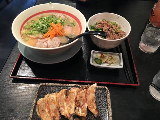 走回京都站,到伊势丹的十楼,吃拉面小路。每一家拉面馆都是外面自助机点单付款的,我作为代表,迅速选了画面上四碗中的两碗,都点大份。当我买好拿着票时,发现其中一碗是担担面。。。它就是在四川担担面的基础上,倒满汤。日本人喜欢喝冰水,尤其是吃拉面,肯定是配冰水,而且桌上放着一壶,挺你加。我第二天就习惯了。两碗面都不怎么好吃,也都没吃完。