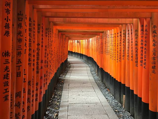 一大早就去伏见稻荷大社,游人稀稀拉拉的,可以在千本鸟居拍出美美的照片。