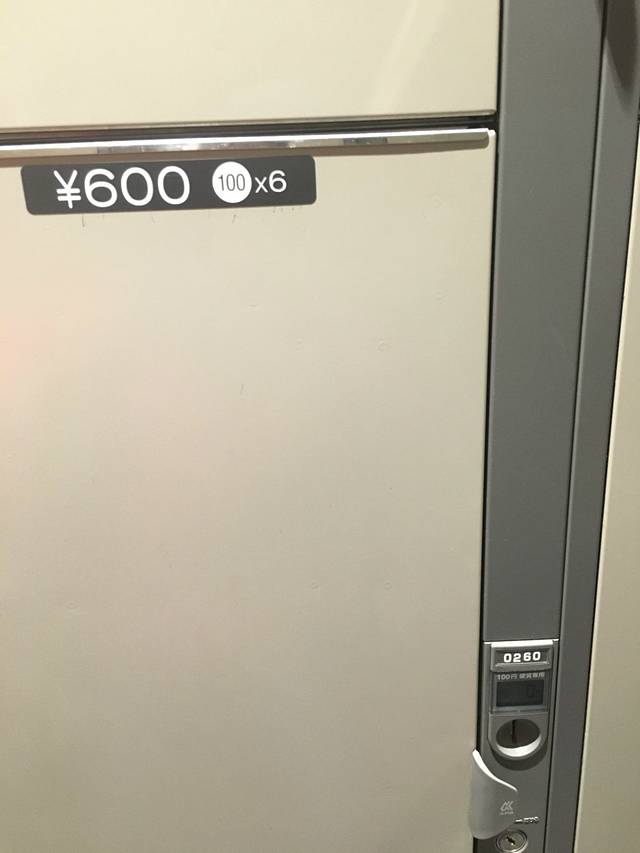 往京都站方向走的时候,看到很多人拿着行李排着队,这就是人工寄存的地方,那我们索性排后面呗。过来个工作人员,问我们几件行李,除去两个包的话是三件,他就让我们去coinlocker,并且指着每件行李各说了一遍seven hundred,我们以为如果人工寄存,加起来要2100円,果断进去找coinlocker了。柜门上有钥匙的就是空的,东西放进去,投币,才能转动钥匙锁上。我们各自用了一个600円的寄存柜,京都的投币只能接受100円的硬币,大阪还能接受500円的硬币。当我们走出来看到700円的柜子时,仿佛才明白刚才那个工作人员的意思,我们的三件行李,用一个700円的柜子就够了,700円超大的,我的箱子竖着放,小姐姐的小箱子横着放绝对够。这样就浪费了500円。