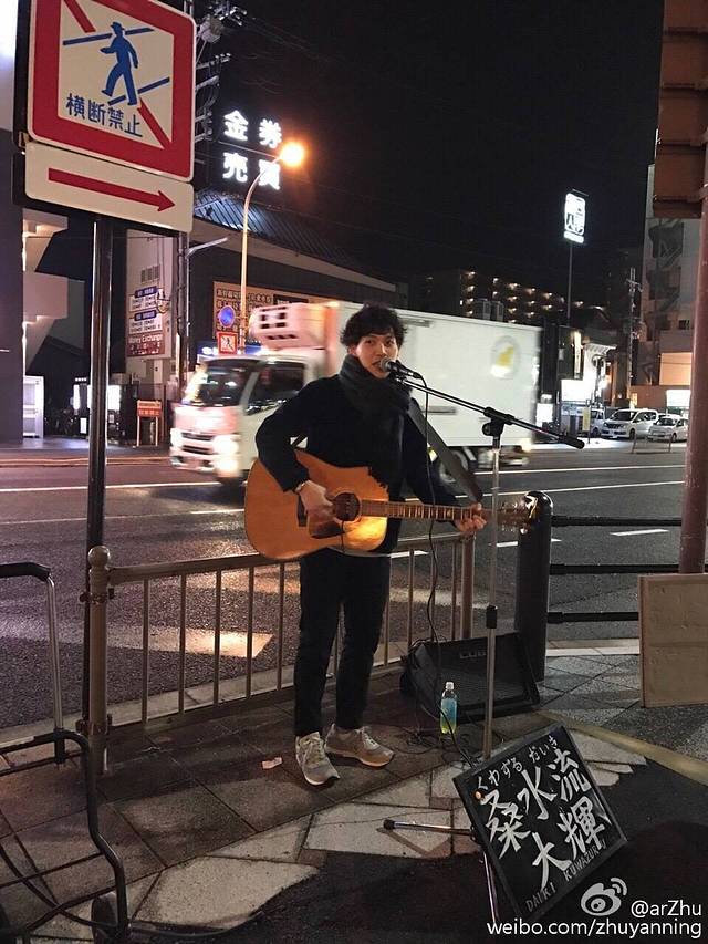 在商场外面看到了街头歌手的演唱,真的唱的好棒,我还录了视频。回国后在微博上阴差阳错的看到别人去年12月,在奈良车站前也拍到他在唱歌。不同的人,在不同时间不同地点,拍到了同一个人在做同样的事情,这难道不是一件很神奇的事吗?