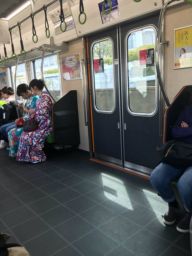 今天要去坐岚山小火车,群主买的票,八个人,要去和小伙伴们见面了,我们大阪拼住宿的大姐大也在其中,可以提前见到了。JR奈良线到京都站,换JR嵯峨野线,坐到马堀站,走几分钟到小火车的龟冈站,和大伙儿碰面啦。如果是同一交通系统的换乘,比如JR线之间的换乘,用交通卡是不需要刷卡出站的。如果是JR换近铁,就必须刷卡出站再进站。