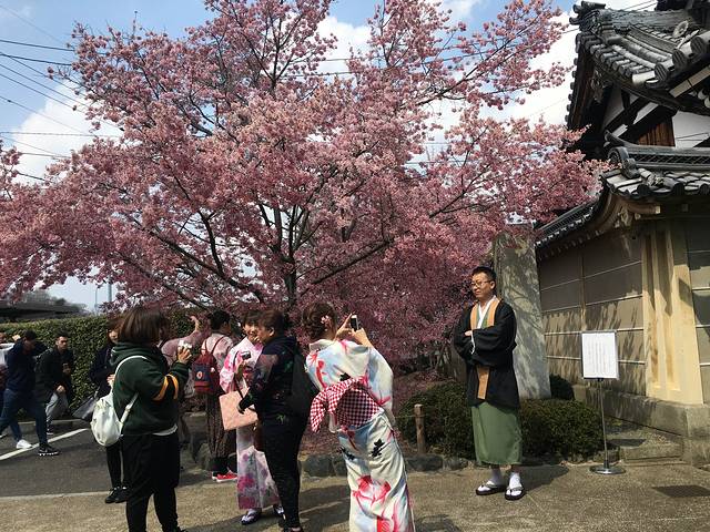 毕竟是开的最好的樱花树,照相的除了游客,连日本人都来拍结婚照了。然后去了三十三间堂,来日本第一次在外面拖鞋,进堂参观必须拖鞋,里面也不能拍照,因为里面有1001座千手观音。用眼睛感受就好了,相当震撼。