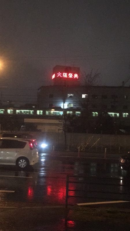 外面依然下着雨,于是决定让大姐姐在别人楼下看行李,我去找。谷歌就开始坑爹的给我乱导了,过马路,过桥这类的,而且还不停的变换路线。大姐大在公寓楼下等我,拍从她角度看出去的标志性建筑物的照片给我。大阪祭典和玉出,我印象中是看到过的。