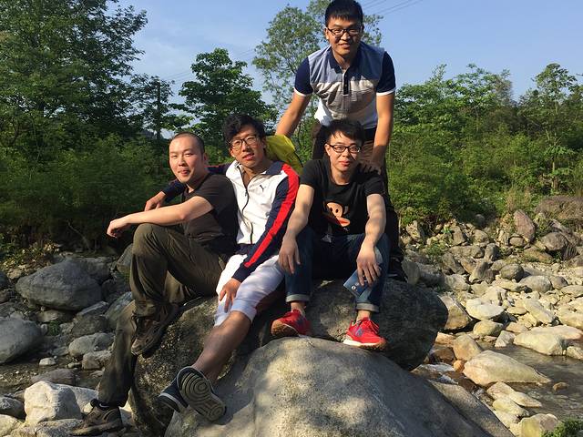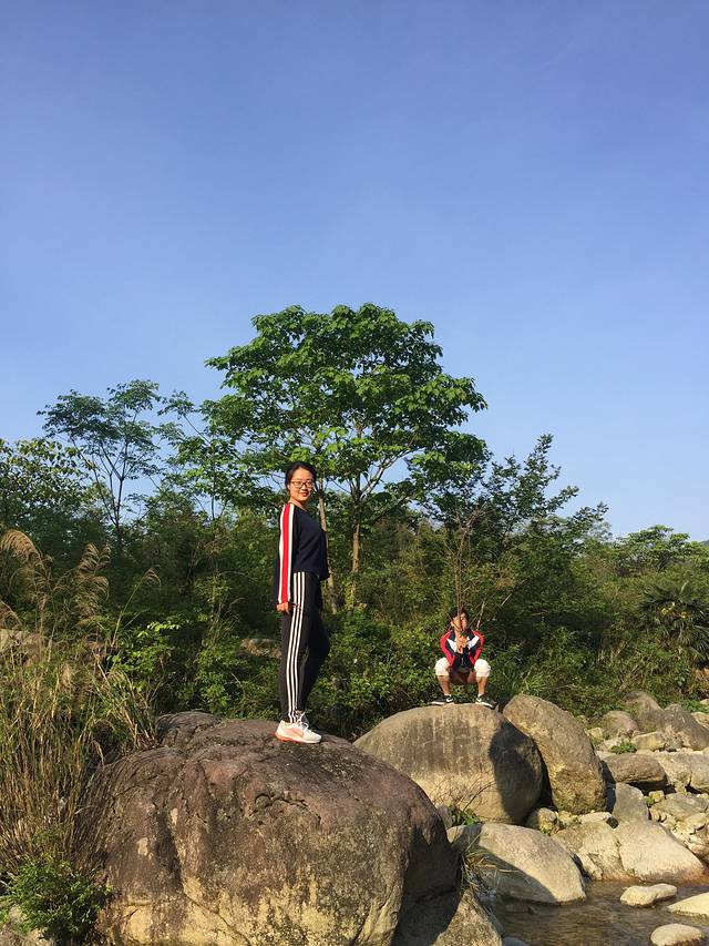 村子后面的溪流冲刷很多大大小小的岩石而过,于是我们一行六个就莫名其妙的走在了一起,逆着水流而上,一路踏石而行,去探险!