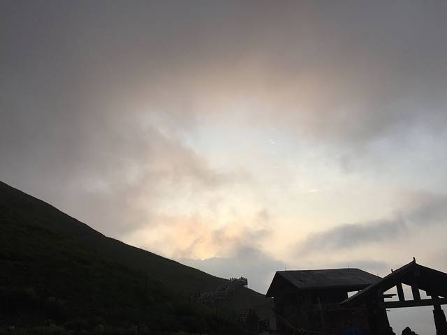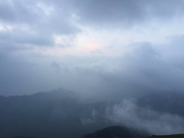 因为晚上玩的太high,忘记拉睡袋脚下的拉链,里面非常冷,整夜睡得不安稳。五点多就起来,裹着睡袋又向金顶进发,拟看云海和/或日出。结果湿气太重,并无所获。所以说,个人的失望不会影响云海或日出被被等待的价值,但等待真的不一定会有结果。所以,我已抵达,我不遗憾。
