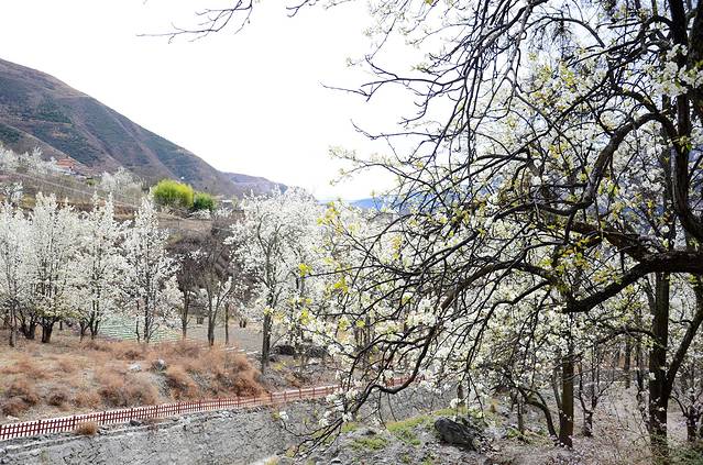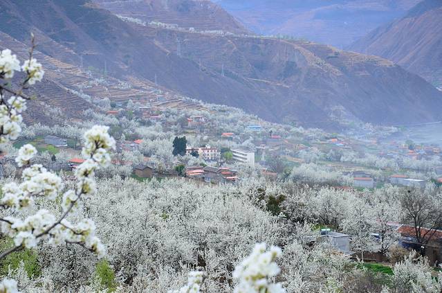金川,沙耳乡,每年3月中旬,梨花漫山遍野的盛开;阳光照耀下,洁白的花瓣,迎着阳光舞动;