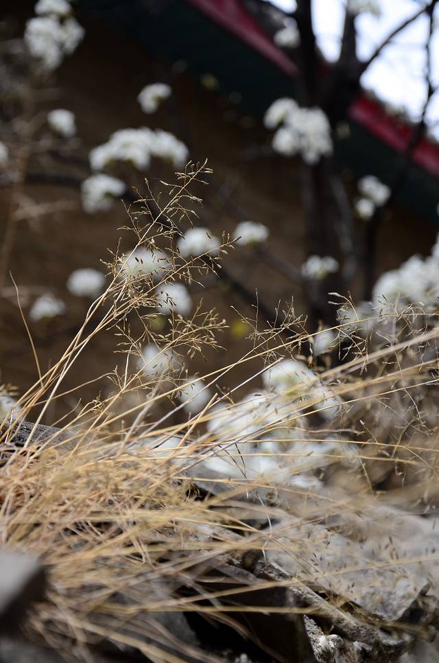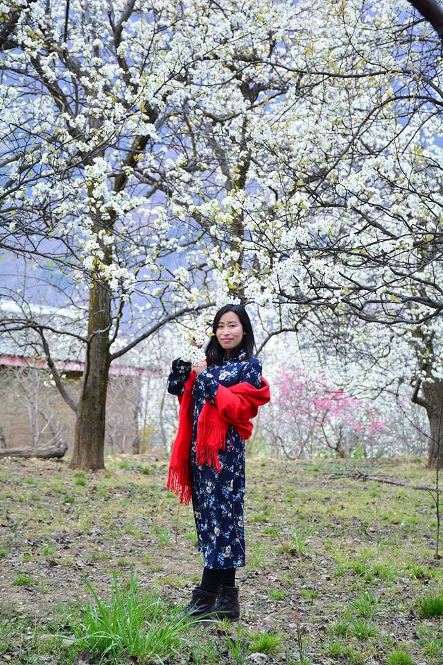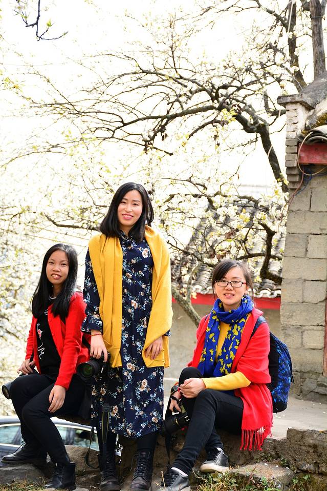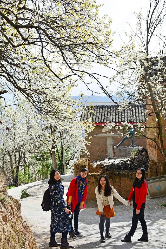 上山的路上,大家看到梨花朵朵盛开;梨树都是几十年的老树,要比一般的梨树高大;