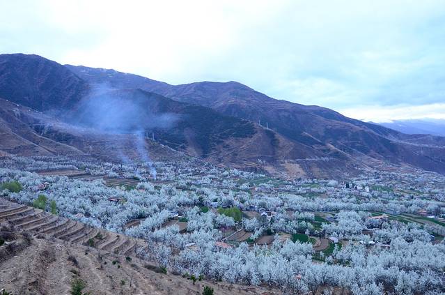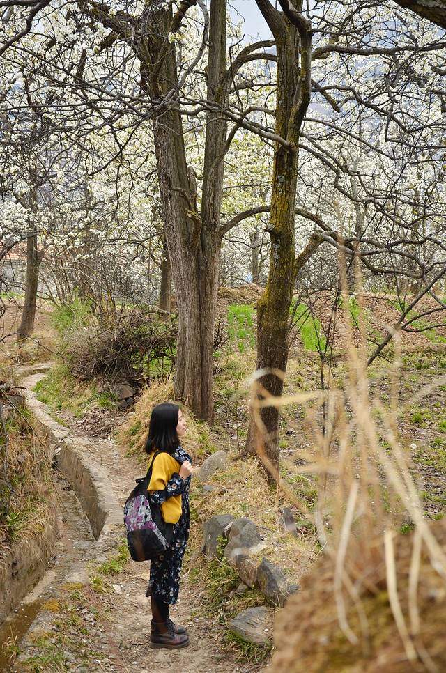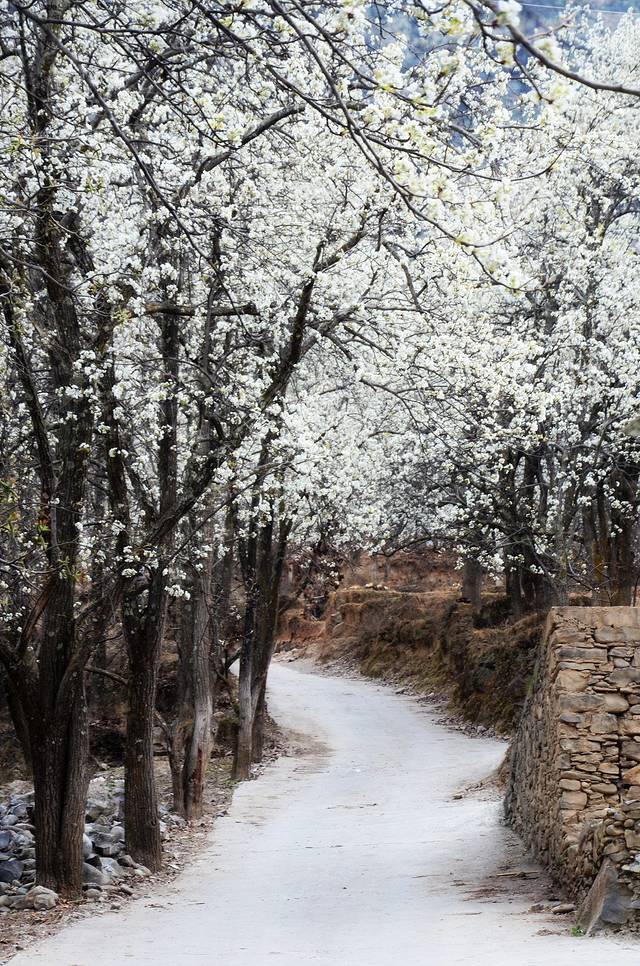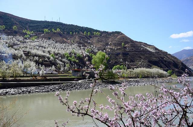 沿途,还能看到梨花、樱花、桃花在河边,山上盛开;
