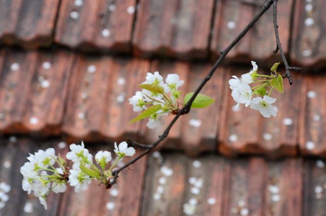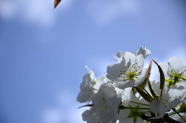 一阵春风拂过,满天的花瓣随风飞舞,站在梨花树下,感觉下了一场花瓣雨;美极了;