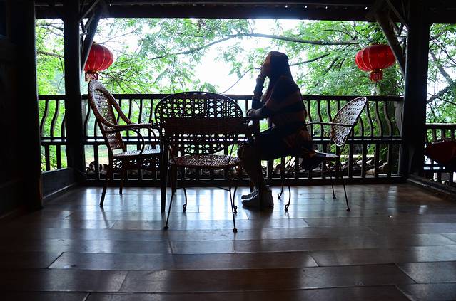 我很喜欢这个阁楼;可以坐在上面喝茶、聊天;侧身就能看到旁边的树枝;雨后的空气感觉特别的舒服,有鸟语,有潺潺的水声;伏在栏杆上,还能看到河边游走的行人;写生的学生;这感觉真好;