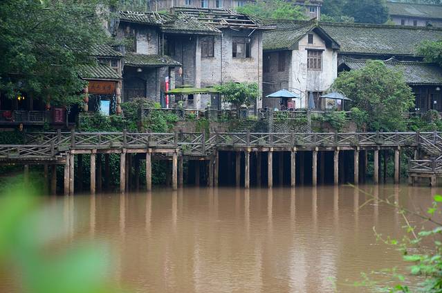古镇沿河修建,河边的一些亭台楼阁、参天古木,古屋辉映,石径蜿蜒,石桥飞流,古树荫江,有些建筑和陈色,还是很难看到了;、古色古香的感觉;有许多的画画的人,坐在河边写生,简直是不一样的风景线