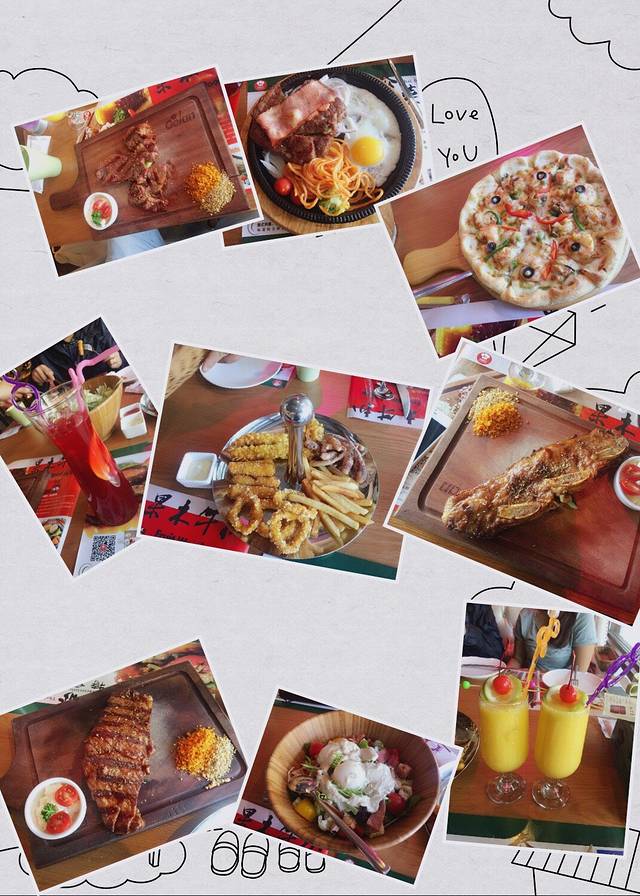 牛扒种类很多,味道很好,分量也大,主要是价格也还不错。本餐557元(赶上活动,还送了我们一张7寸的水果披萨,好幸福,正好两个男人火车上消灭之)。