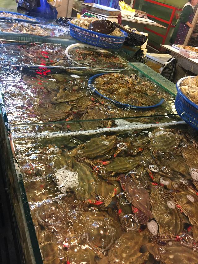 市场内各种新鲜海鲜、蔬菜、肉类、海鲜干货,应有尽有,不过一定要货比三家,不能一进去就买,会被坑的。我们几乎问遍了所有摊位,买的绝对是最便宜,最新鲜的。