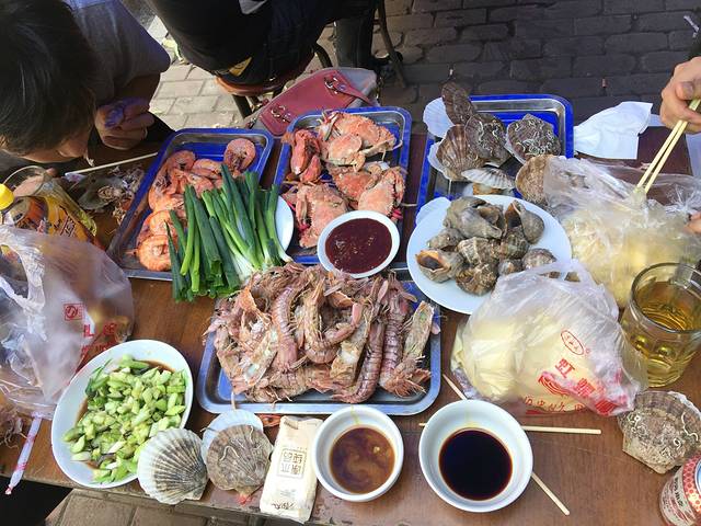 本餐海鲜共计花费256元。豆皮也是在市场买的,卷上大葱(葱和酱可以跟老板点),好吃的不得了,所以我们只是买了豆皮回北京。