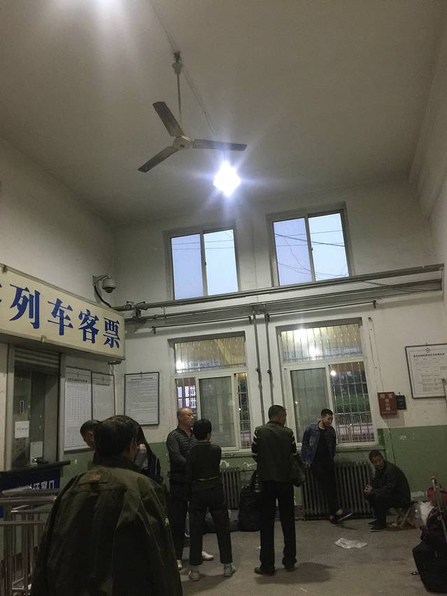难得看见没有候车厅的火车站,大家全部在外面排着。自助取票更可怜,一共就4台机器,2台不能用,能用的还反应慢,感觉我取4个人的票,戳屏幕戳了好几十下。
