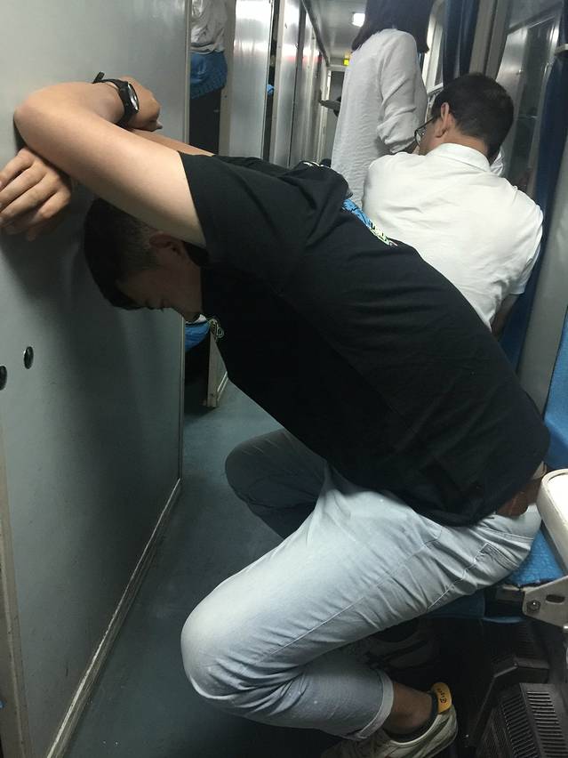 一路晚点1个半小时,最后赶上一点,还是晚点1小时,我家大哥在做运动(我们只买到一张下铺,前两个小时没人的时候,我们还打了会儿牌,那才有一种坐慢车旅行的感觉。忽略某位姑娘牌技不好,哈哈哈)。