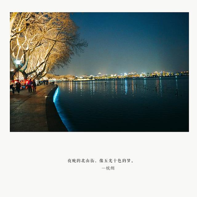 从葛岭出来,便是北山街,这条充满故事的小街,在灯光的衬托下显得梦幻唯美。