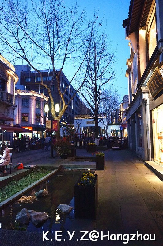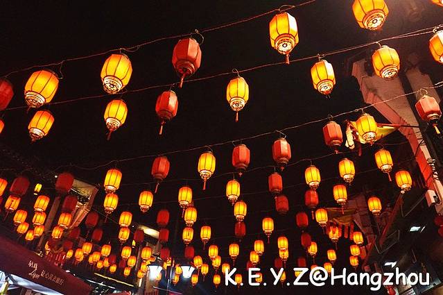 等我们终于走到河坊街,街上已经灯火通明人声鼎沸了。这里应该就是每个城市都有的著名的都是外地人的步行街了,和上海的南京路一样。对于晚上实在不知去哪儿的我们,也只能到这里逛逛了。